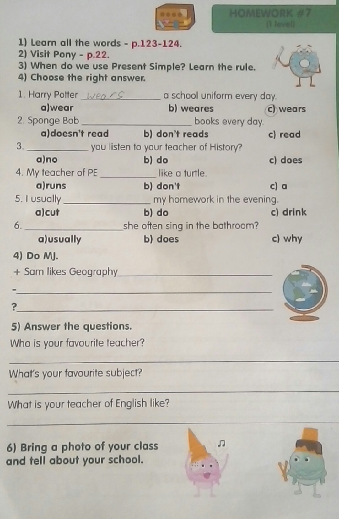 1) My favourite teacher is и пишешь имя любимого учителя.