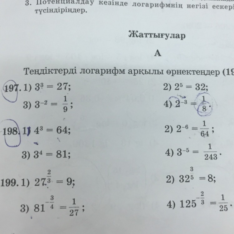 197. 1)3^2=3*3*3=27. 3)3^-2=1/3^2=1/9