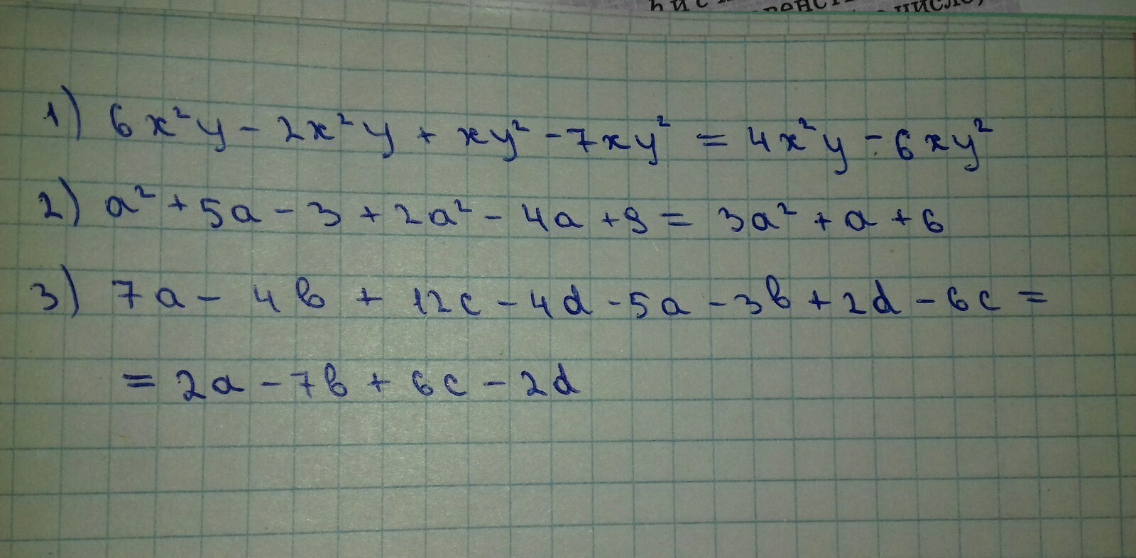 3) 2a-7b+6c-2d