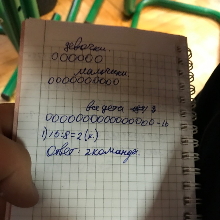 Во дворе гуляли 6 девочек и 10 мальчиков они разделились на команды по 8 человек в каждой сколько получилось команд схему как нарисовать