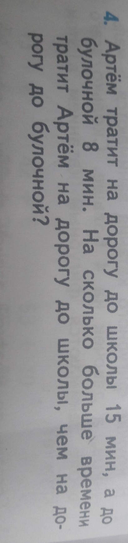 15-8=7 Артем тратит на 7 минут больше чем в булочную