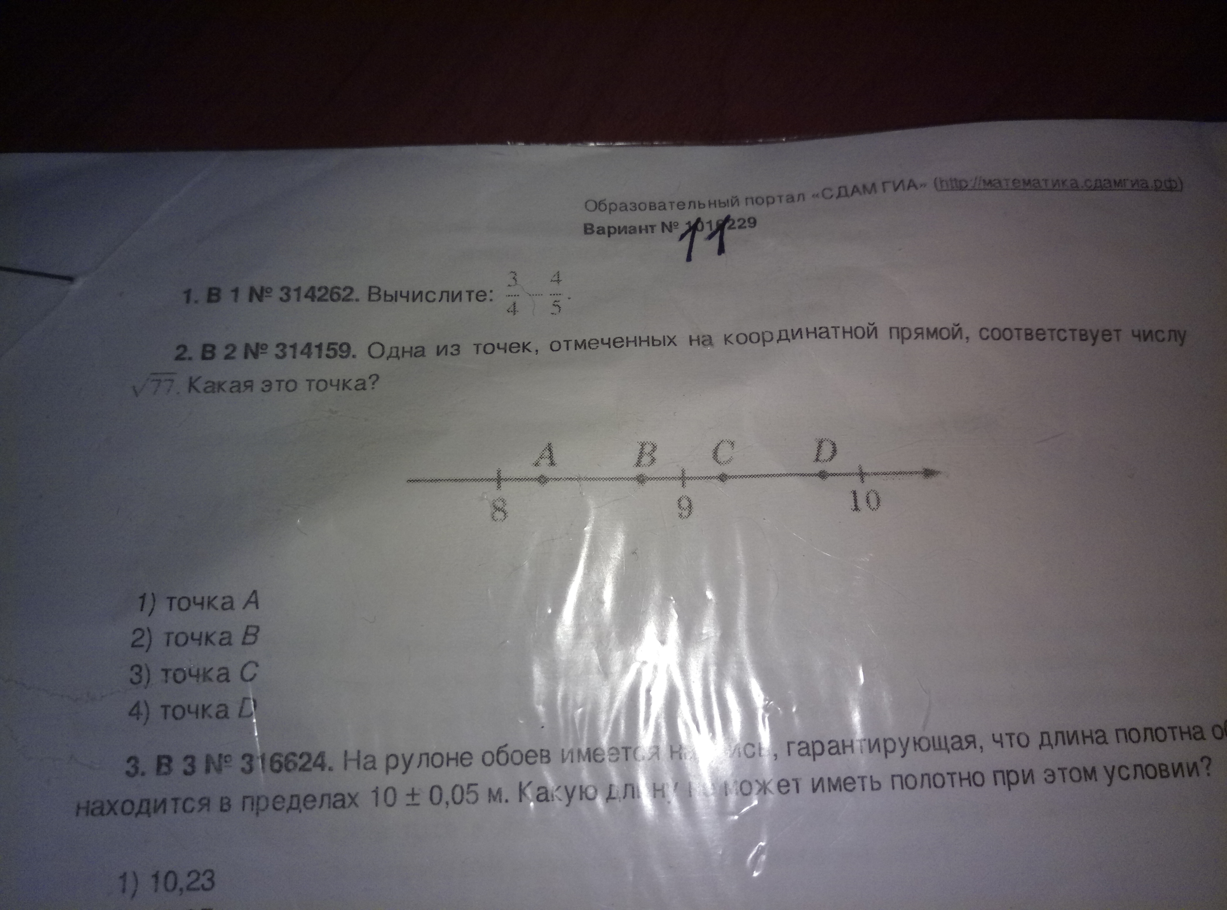 Это точка В, так как корень из 77 находится между корнем из 81 (9) и 64 (8)