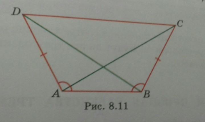 На рисунке 8.11 угол А = угол B , AD = BC. Докажите, что AC = BD.