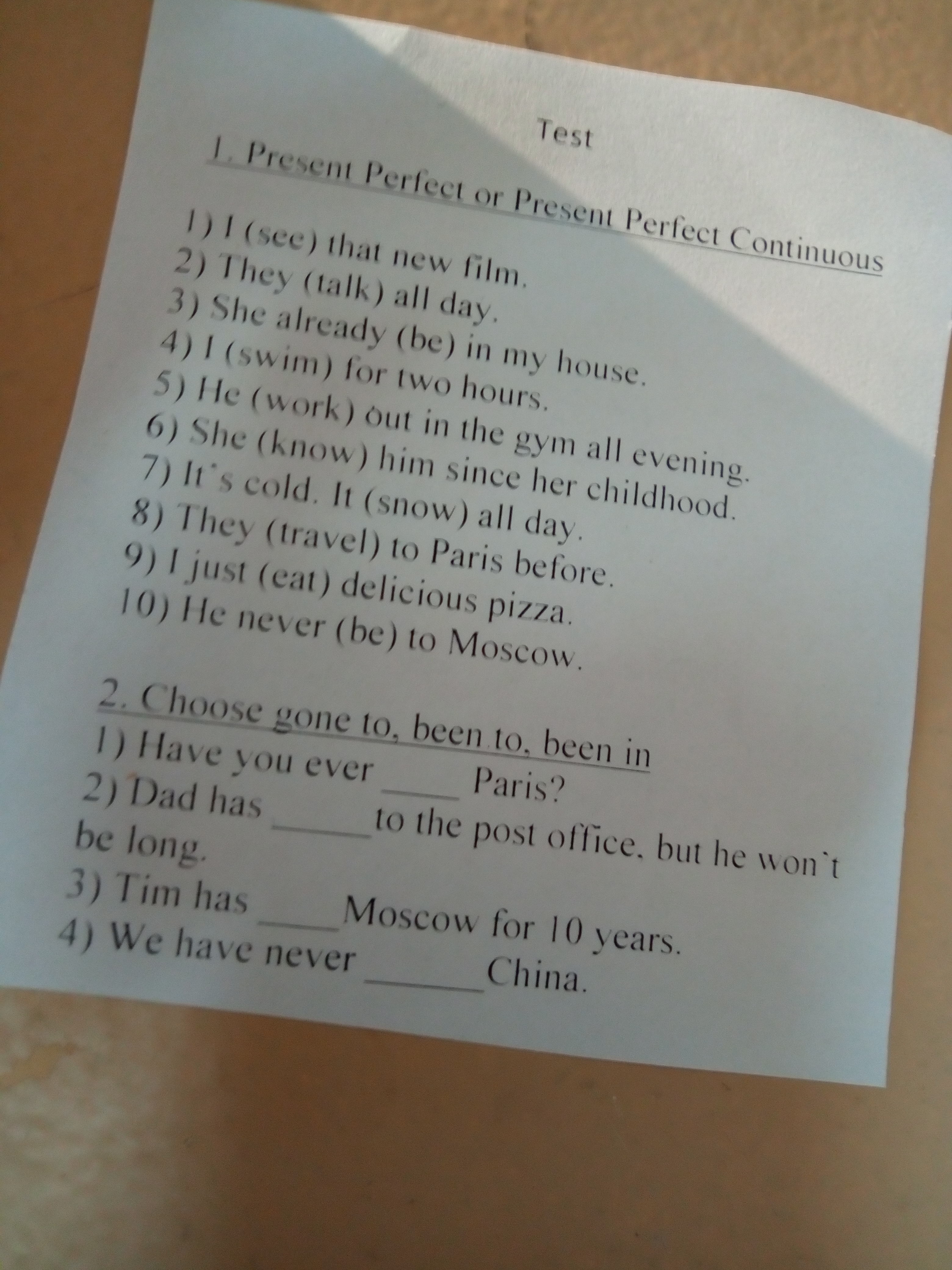 2. 1) been to