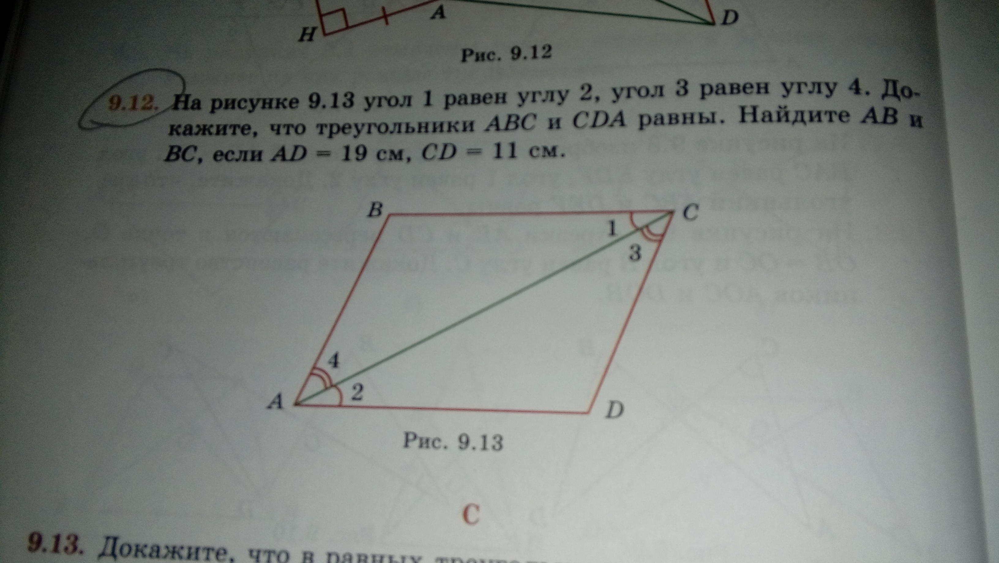 треугольник АВС равен треугольнику СDA по 2 признаку равенства треугольников