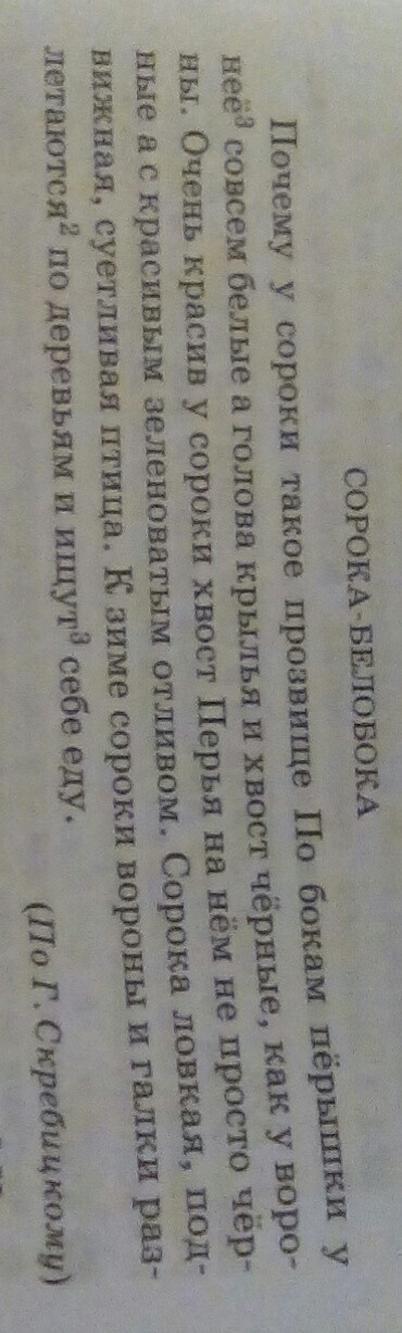 Почему у сороки такое прозвище?По бокам перышки у неё совсем белые, а голова,крылья и хвост черные,как у вороны.Очень красив у сороки хвост.Перья на нём не просто чёрные,а с красивым зеленоватым отливом.Сорока ловкая,подвижная,суетливая птица.К зиме сороки,вороны и галки разлетаются по деревьям и ищут себе еду.