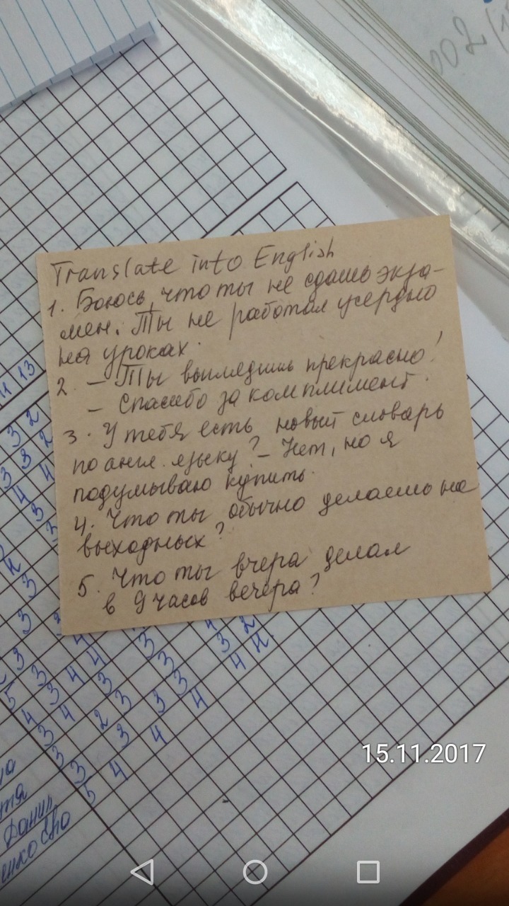 5. What were you doing yesterday at 9 p.m.?