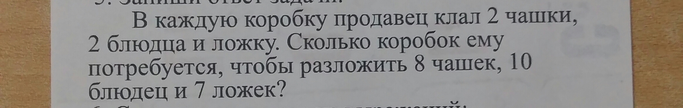 7 коробок т. к. 7 ложек а в каждую коробку кладут 1 ложку