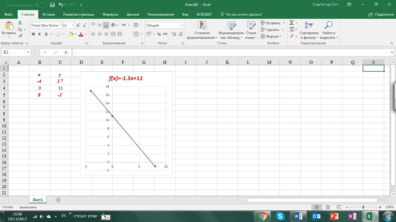 f(x)=-1.5x+11