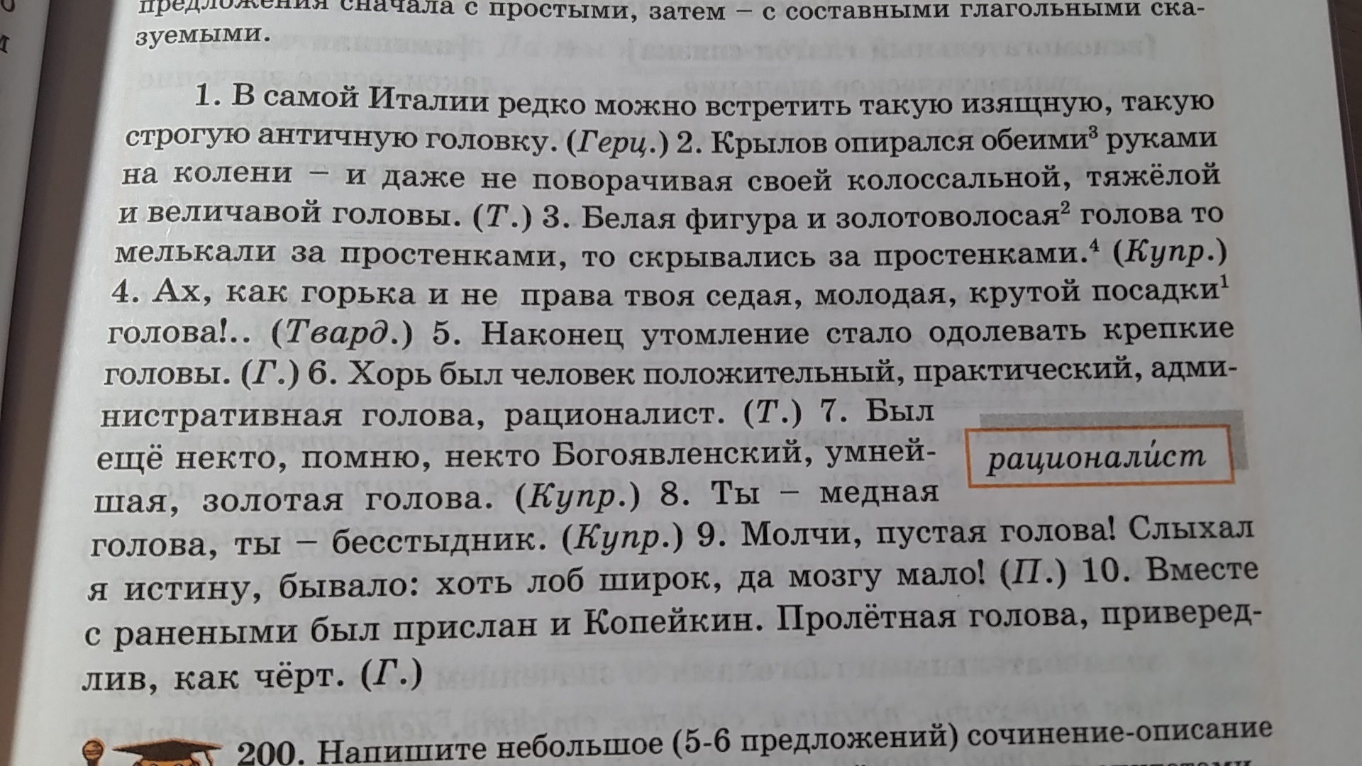 10 предложение - Пролётная голова, привередлив, как черт.