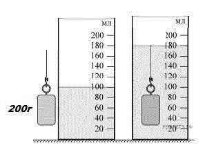 На рисунках показана гирька, помещенная в мензурку с водой. Масса гирьки указана на рисунке.