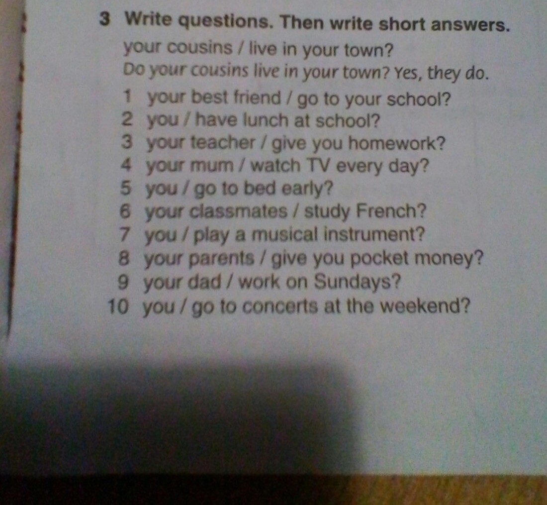 4)Does your Mum watch TV every day?No,she doesn`t.