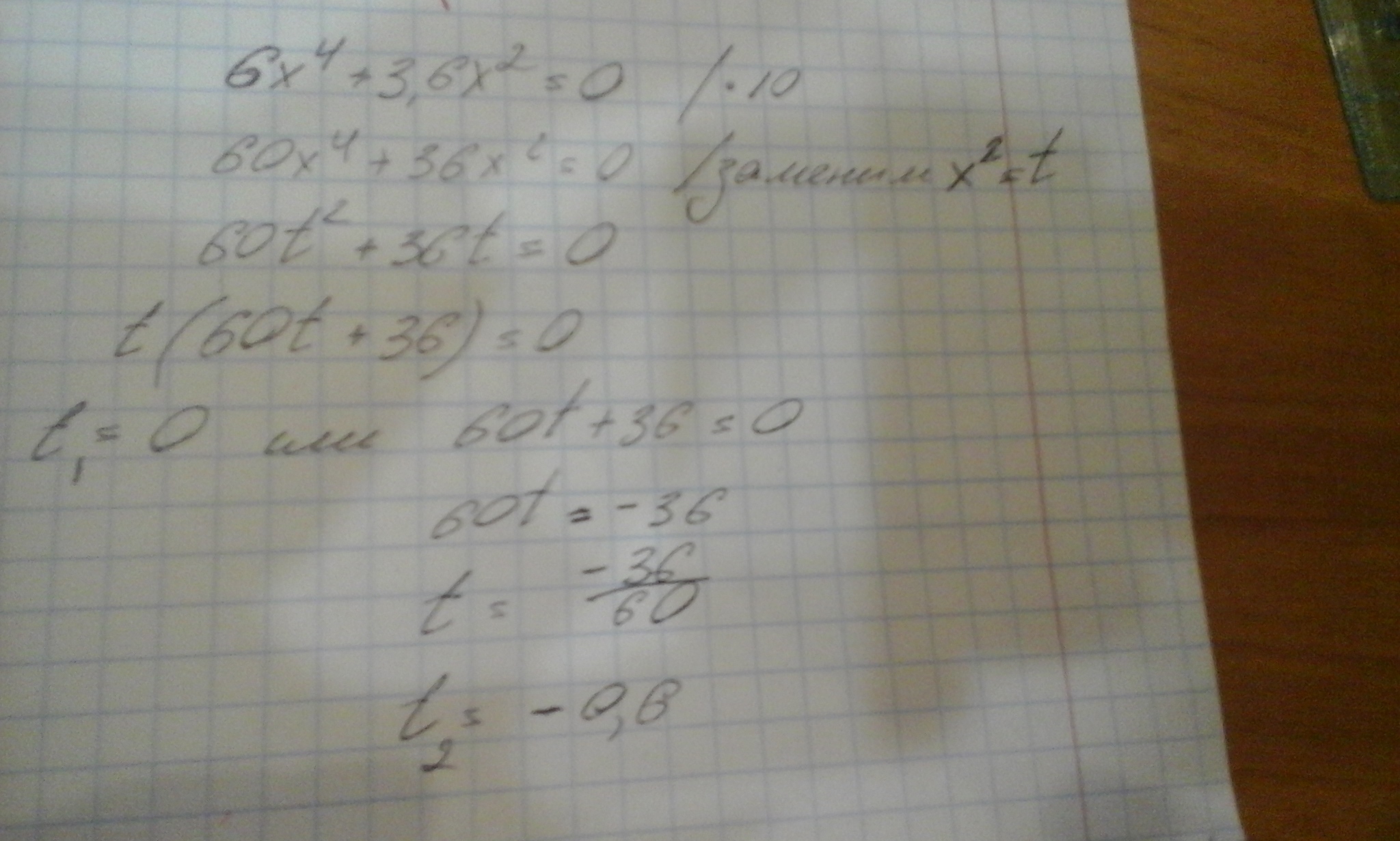 Неполное биквадратное уравнение. Х в квадрате заменяем на t