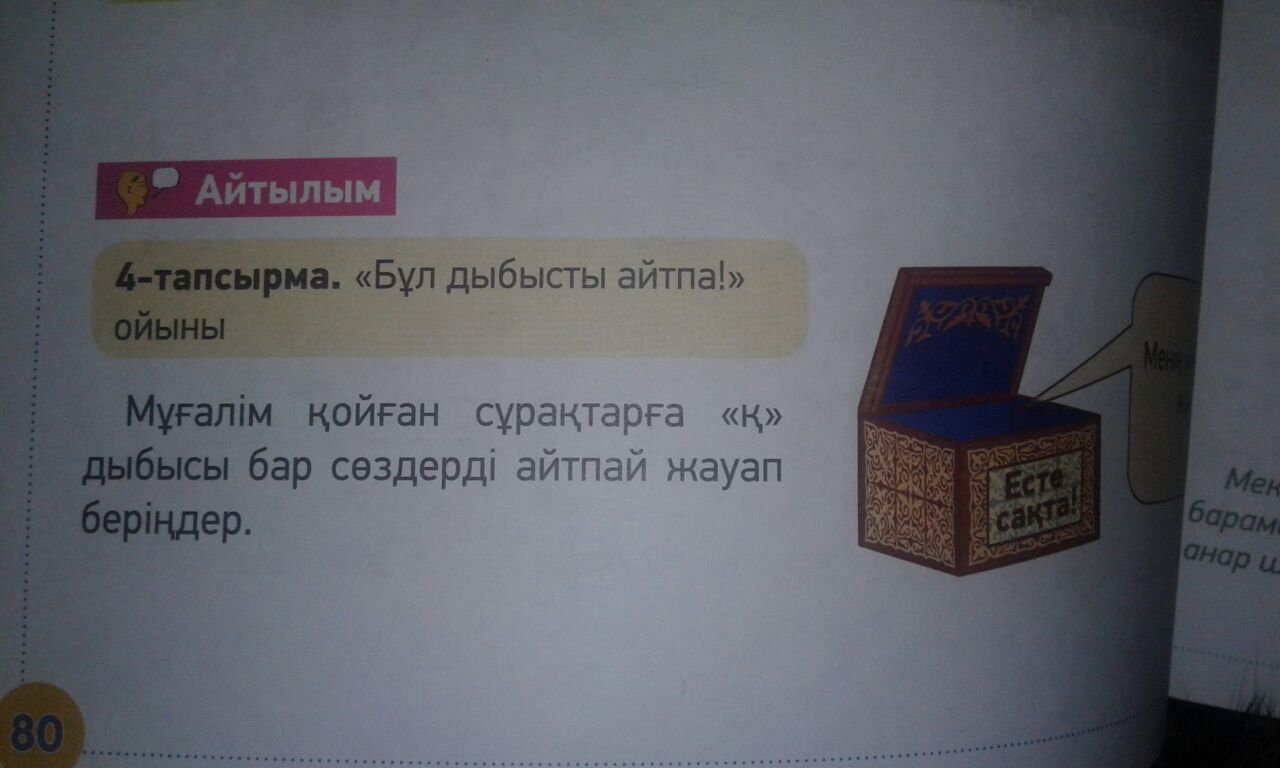 Задание:Учитель задает вопрос а вы должны отвечать и не произнести слог "қ"