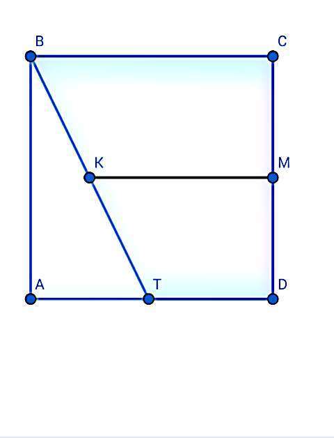 четырёхугольник ABCD -квадрат,длина стороны которого 12см.точка T внутреняя точка отрезка AD.длина отрезка DT больше длины отрезка AT на 4 см.Вычеслите длину средней линии трапеции TBCD