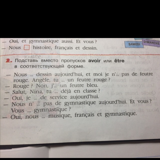 -Oui, nous avons musique, françias et gymnastique.
