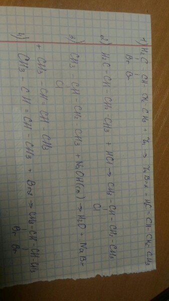1,2-дибромбутан → бутен-1 → 2-хлорбутан → бутен-2 → 2,3-дибромбутан . Помогите выполнить реакцию, заранее спасибо.