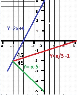 tg α = (k₂ - k₁)/(1 + k₂*k₁ =(- 1 2/3)/(1+ 2/3) = - 1