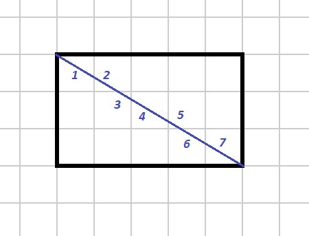 Диагональ проходит через 7 клеточек.
