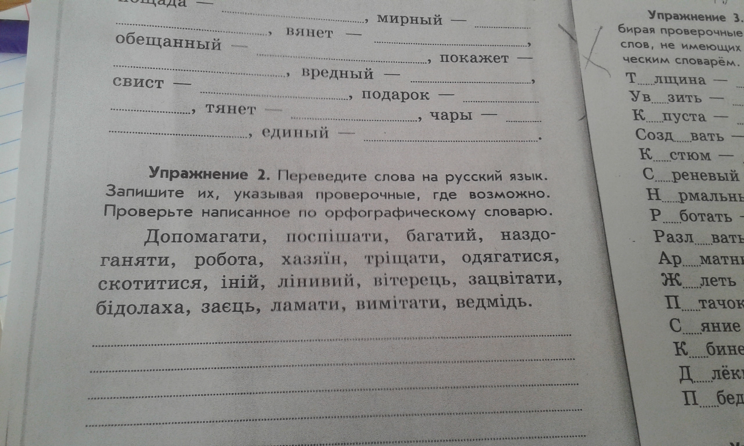 переведи слова на русский язык запиши их указывая проверочные где возможно проверьте написеное по орграфическому словарю