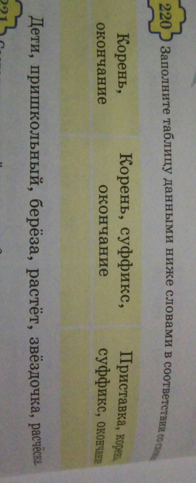 дети корень окончание, пришкольный приставка корень суффикс окончание, береза корень окончание