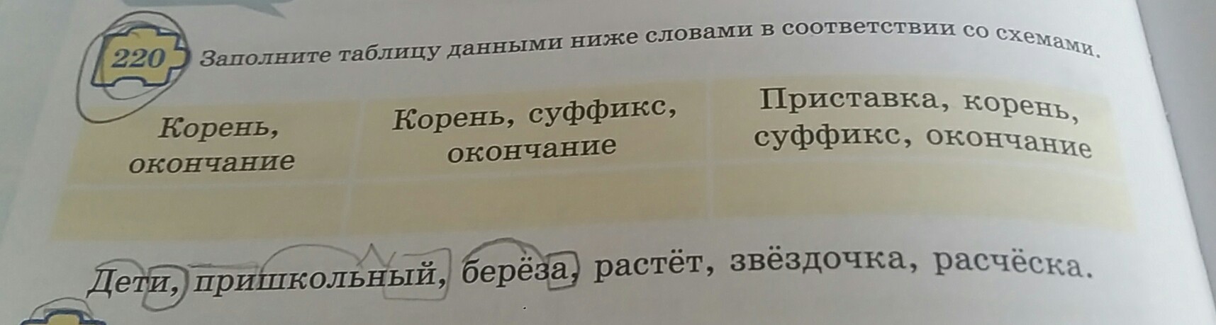 растет корень раст окончание ет звездочка корень звезд суффикс очк окончание а расческа корень расчес суфикс к окончание а