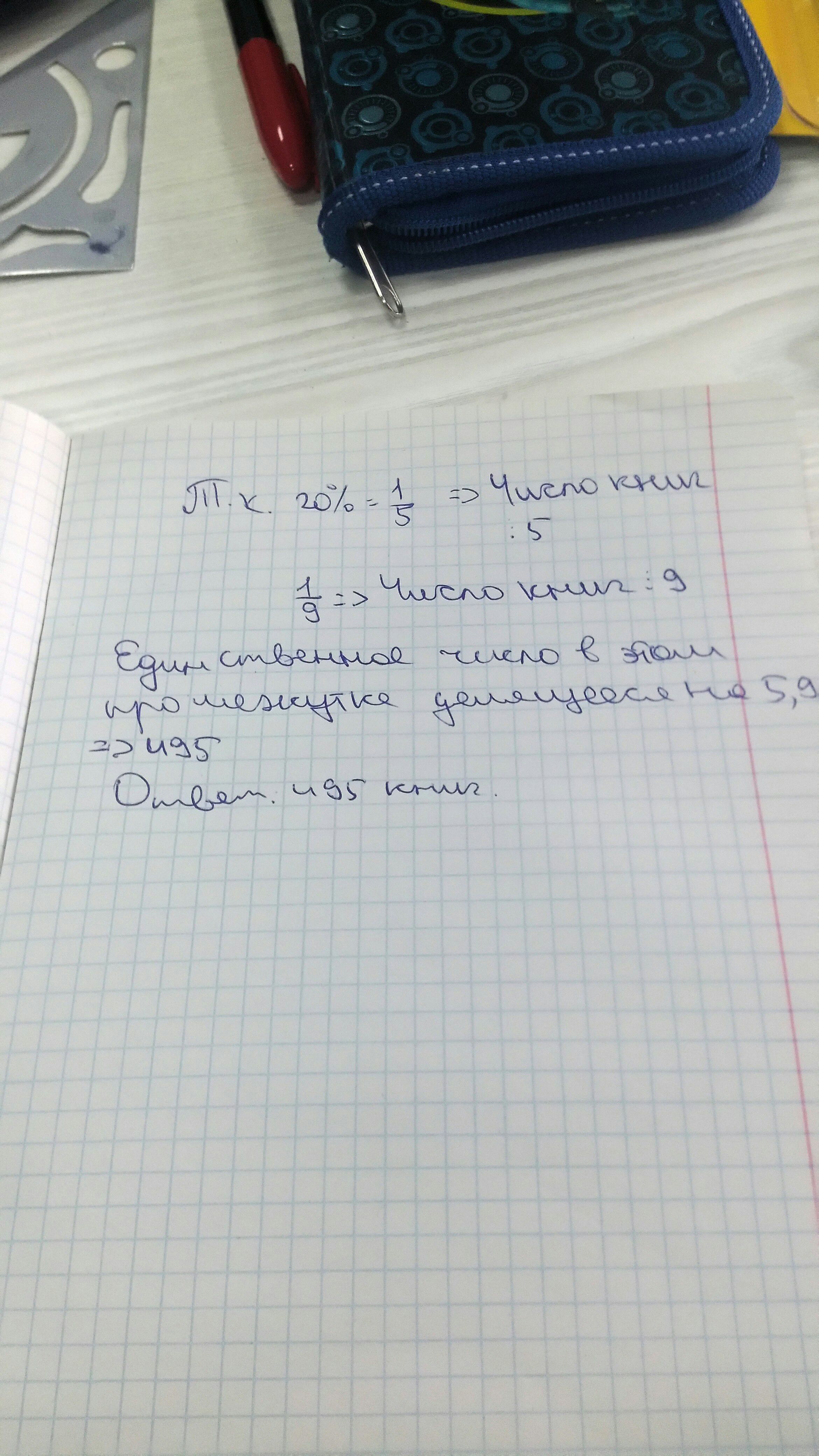 Количество книг в домашней библиотеке Оли больше 470, но меньше 500. Из них 20% - книжки по математике, а 1/9 - сказки народов мира. Сколько книг у Оли?