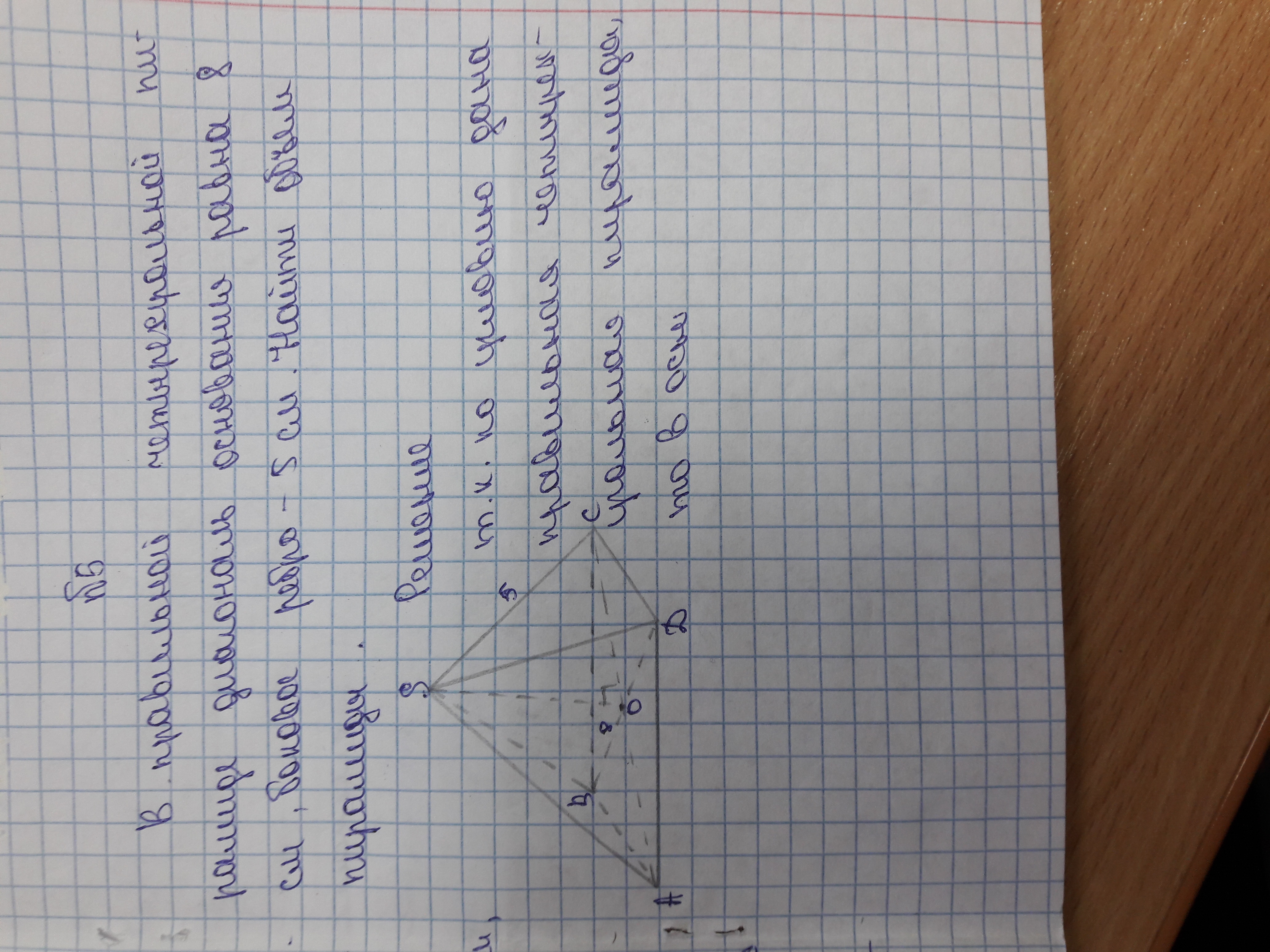 Диагональ основания 8, боковое ребро 5, найдём высоту пирамиды.