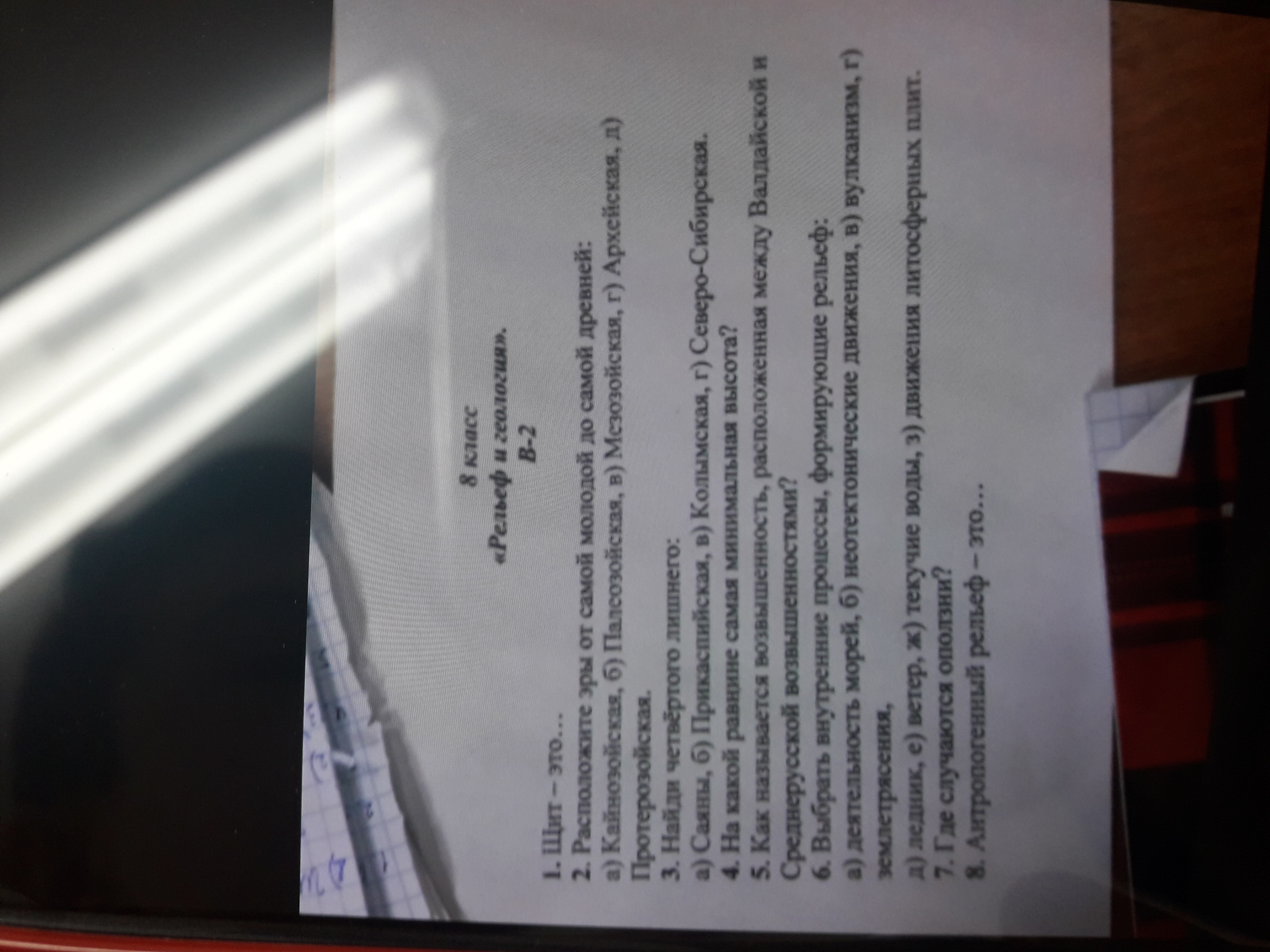 2) Кайнозойская , Мезозойская , Палеозойская , Протерозойская , Архейская