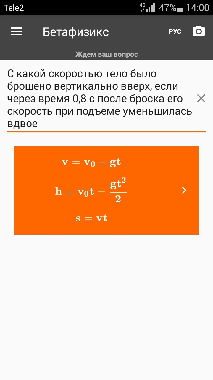 С какой скоростью тело было брошено вертикально вверх, если через время 0,8 c после броска его скорость при подъеме уменьшилась вдвое