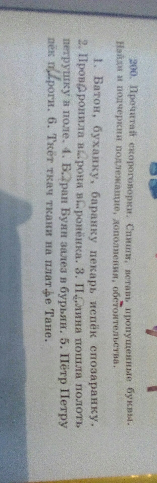 пожалуйста помогите Прочитайте скороговорки Спишите вставьте пропущенные буквы найдите и подчеркните подлежащее дополнение обстоятельство Помогите выполнить Это задание