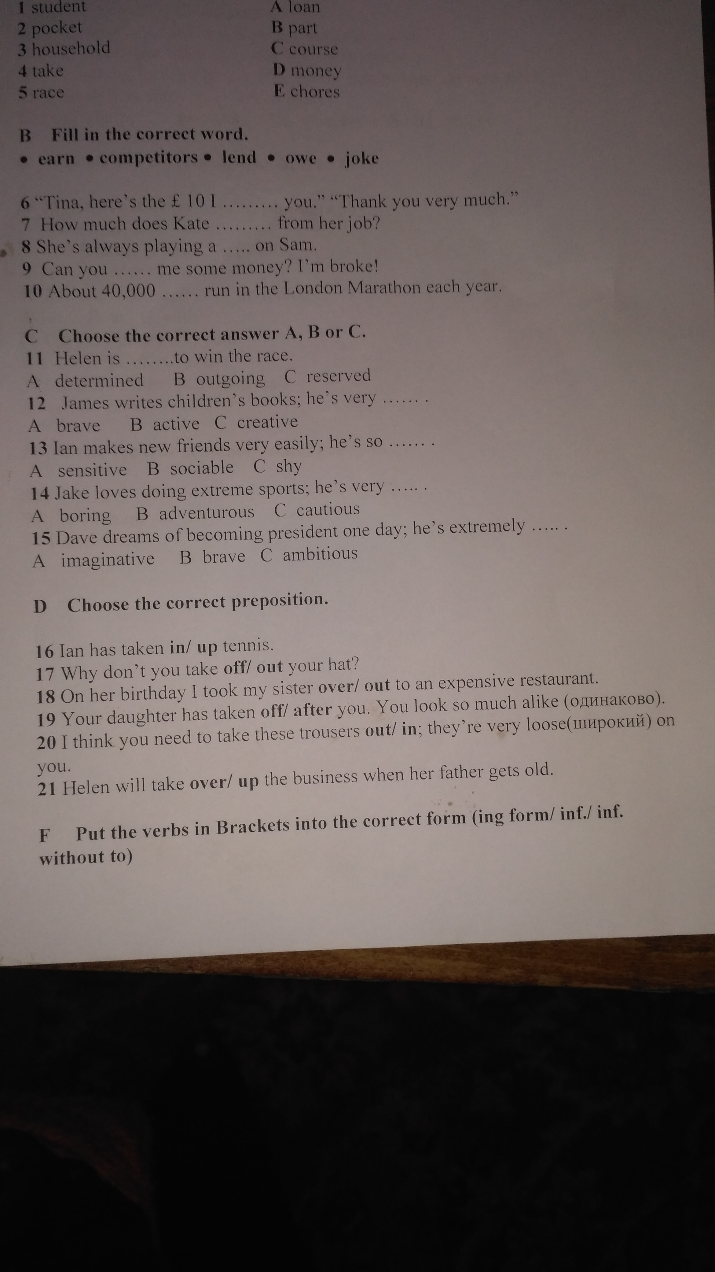 D variant 16 up.17take off 18 out 19 taken after 20 take over 21 take over