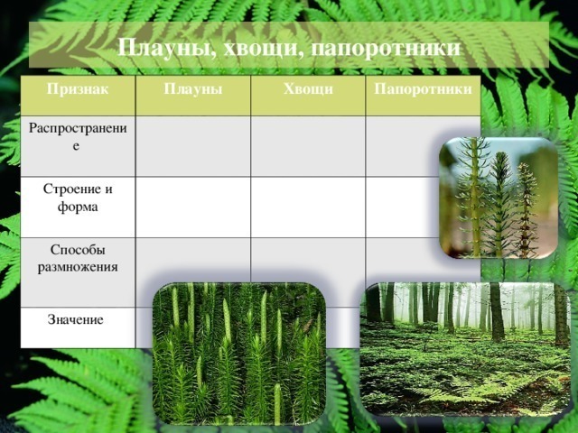 плауны хвощи папоротники