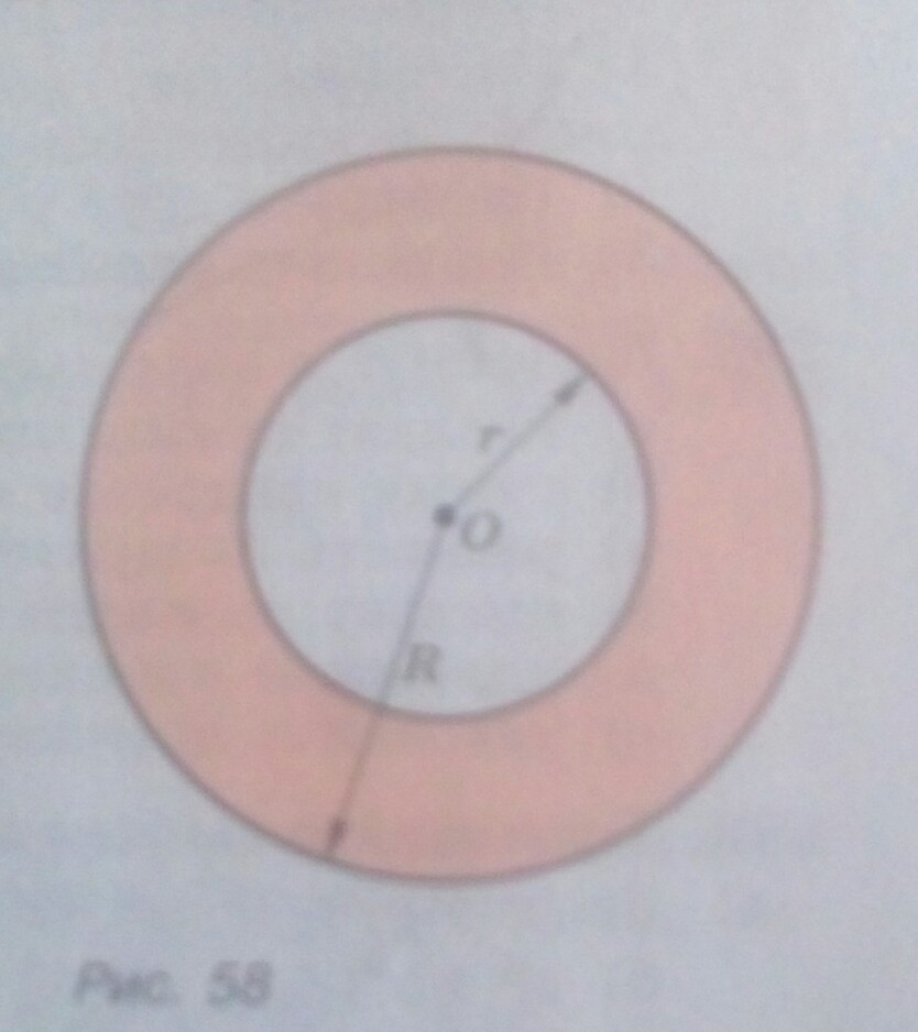 Составьте формулу для вычисления площади кольца изображенного на рисунке 58 Найдите площадь кольца если R равно 6,4 см и 3 и R равно 3,6 см