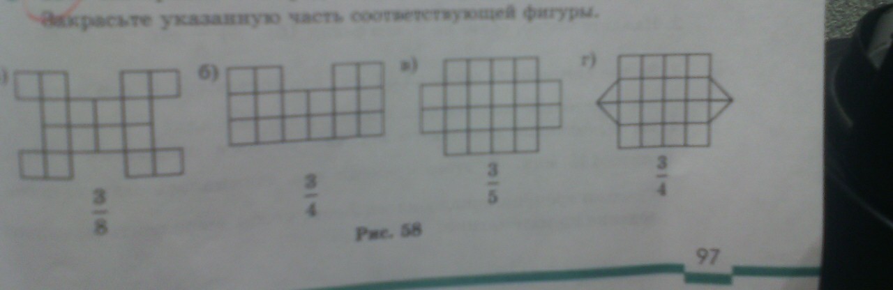 Начертите в тетради такие же фигуры как на рисунке 58 закрасьте указанную часть соответствующие фигуры