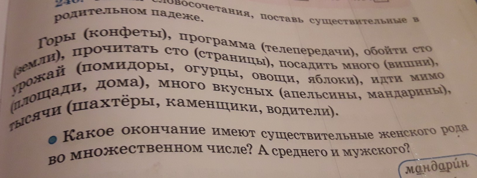 горы конфет, программа телепередач, обойти сто земель, прочитать сто страниц, посадить много вишень, урожай помидоров, огурцов, овощей, яблок, идти мимо площади, домов, много вкусных апельсин, мандарин, тысячи шахтеров, каменщиков, водителей.