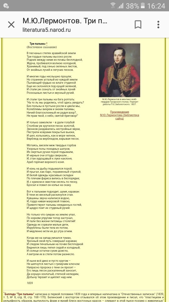 реальное в балладе : гибель трёх пальм и дикое пустое место, бывшее раньше цветущим оазисом.