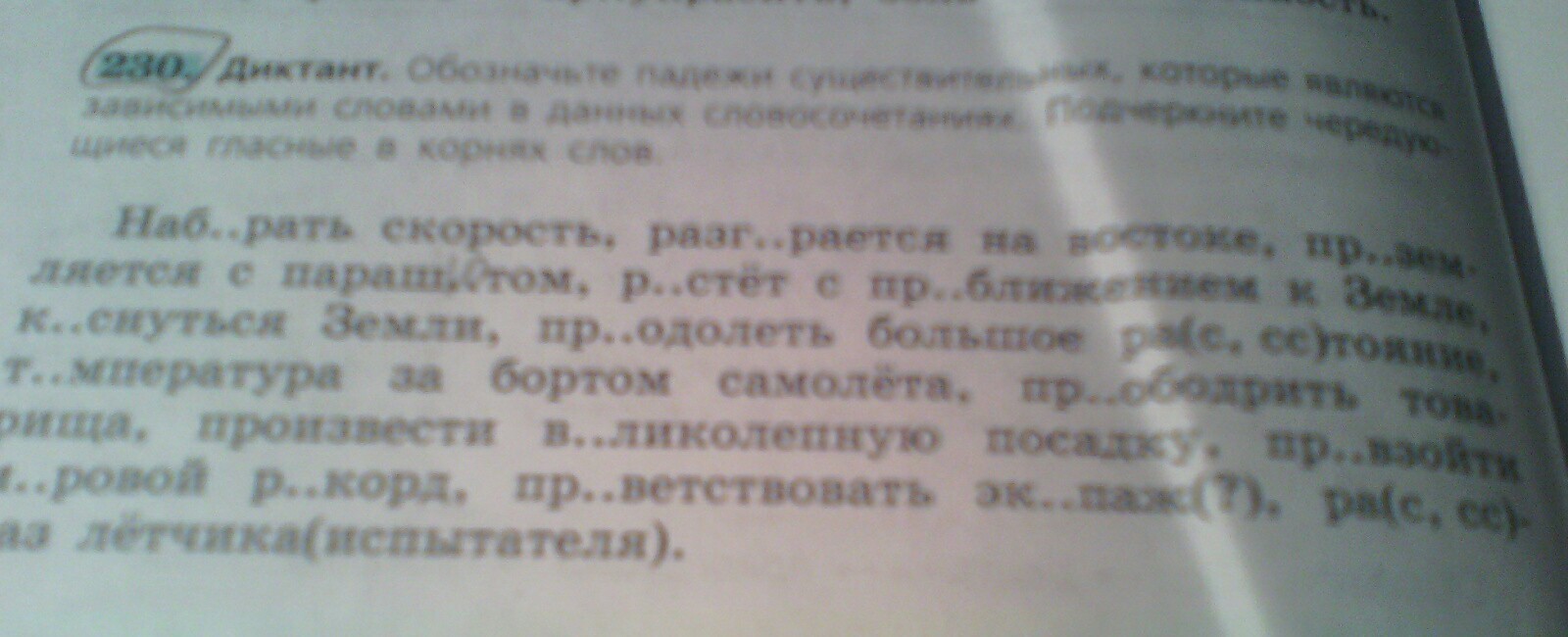 Набирать скорость, разгорается на востоке, приземляется с парашютом, растёт с приближением к Земле, коснутся Земли, преодолеть большое расстояние, температура за бортом самолёта, приободрить товарища, произвести великолепную посадку, превзойти мировой рекорд, приветствовать экипаж, рассказ лётчика испытателя.