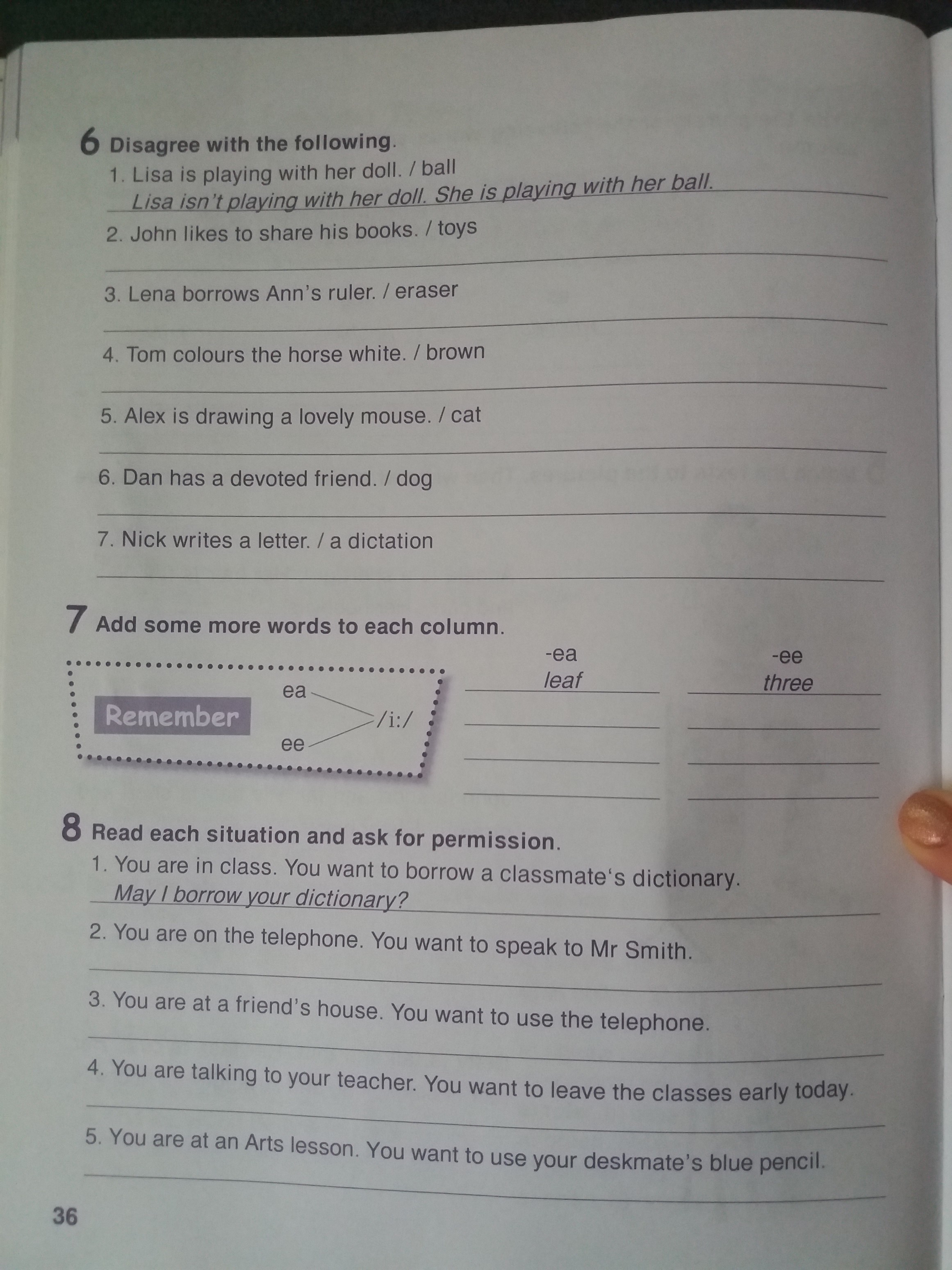 2)Lena doesn't borrow Ann's ruler. She borrows Ann's eraser.