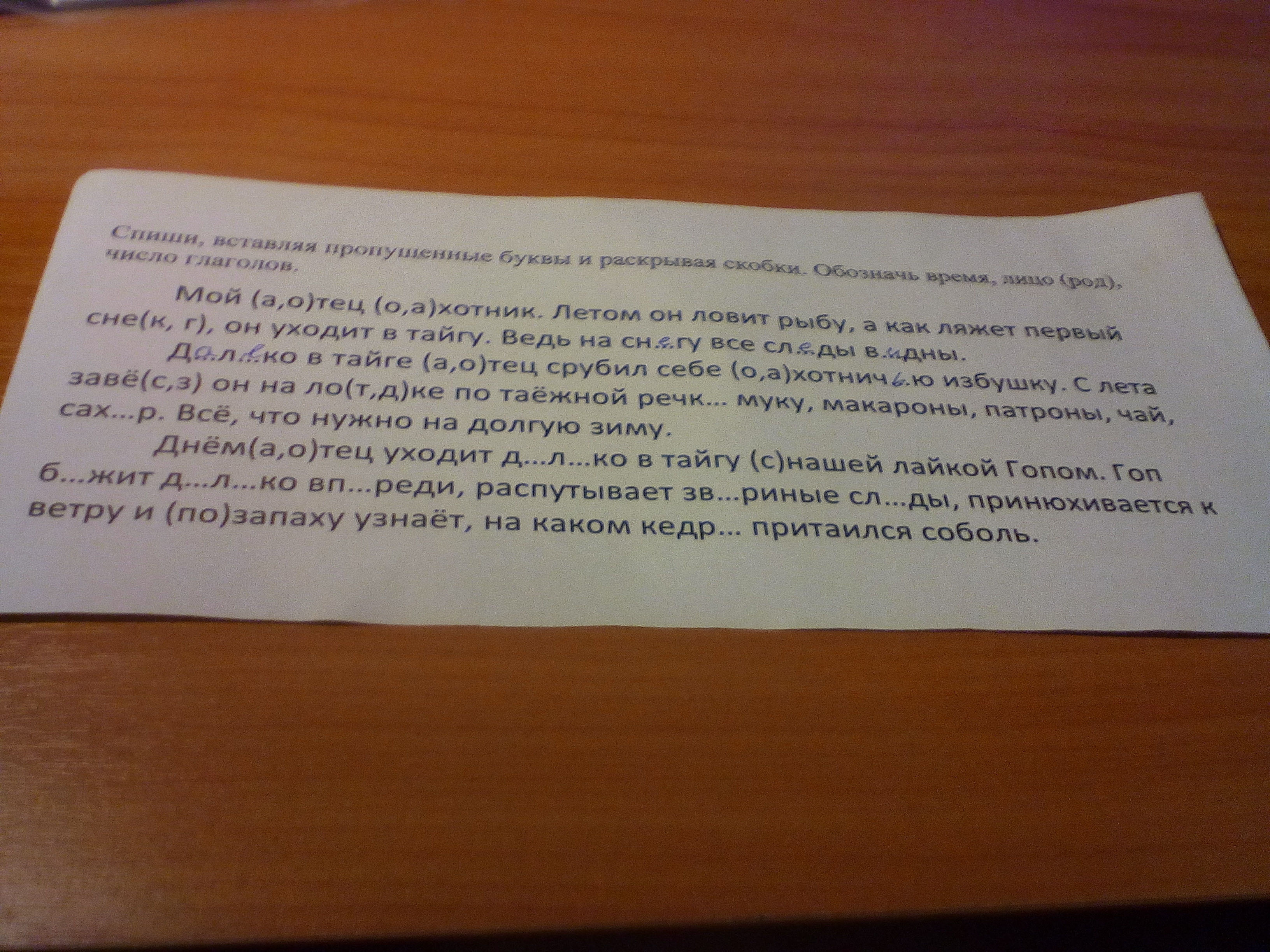 Мой отец охотник. Летом он ловит рыбу, а как ляжет первый снег, он уходит в тайгу.Ведь на снегу все следы видны.