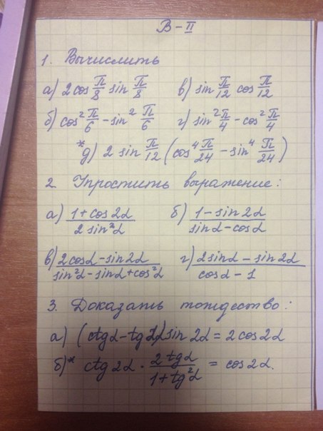 1);;...=frac{2cos alpha -2sin alpha ; cos alpha }{1-sin alpha }=frac{2cos alpha (1-sin alpha )}{1-sin alpha }=2cos alpha \2)...=frac{2sin alpha -2sin alpha cos alpha }{cos alpha -1}=frac{2sin alpha (1-cos alpha )}{cos alpha -1}=-2sin alpha \3)...=(frac{cos alpha }{sin alpha }-frac{sin alpha }{cos alpha })sin2 alpha =frac{cos^2 alpha -sin^2 alpha }{sin alpha ;cos alpha }sin2 alpha =frac{cos2 alpha }{0,5cdot sin2 alpha }sin2 alpha =2cos2 alpha
