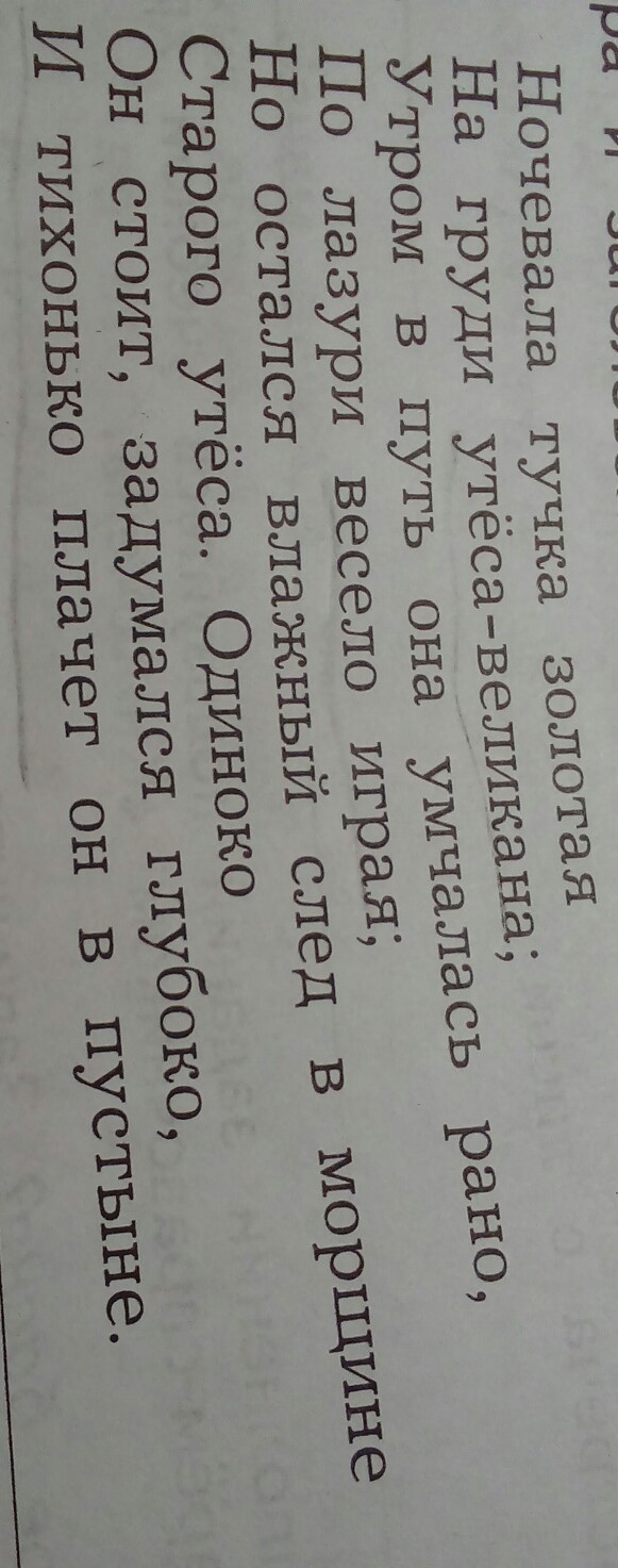 Эпитеты: тучка золотая, утеса-великана, влажный след, старого утеса