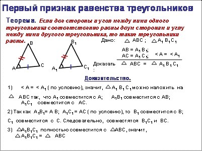 Пожалуйста, помогите доказать теорему по первому признаку. И скажи, что написать в строке дано и строке доказать.вот ответ)