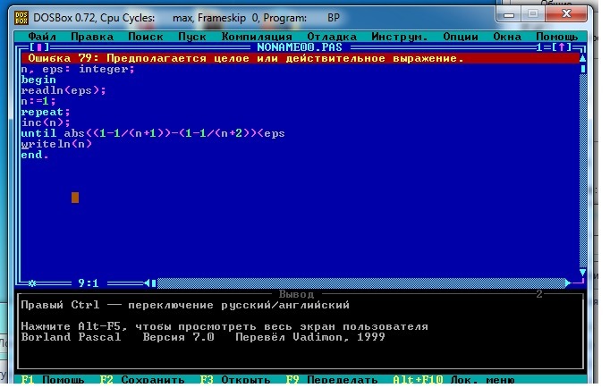 Дана последовательность An=(1-1/2)(1-1/3)…(1-1/(n+1)) eps >0. Найти первый член последовательности An для которого |An-A(n+1) | < eps