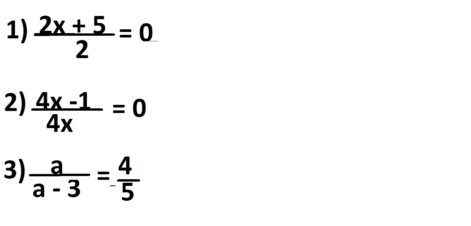 1) для того что бы получился 0 при делении в числителе должен быть 0⇒ 2x+5=0 x=-2.5