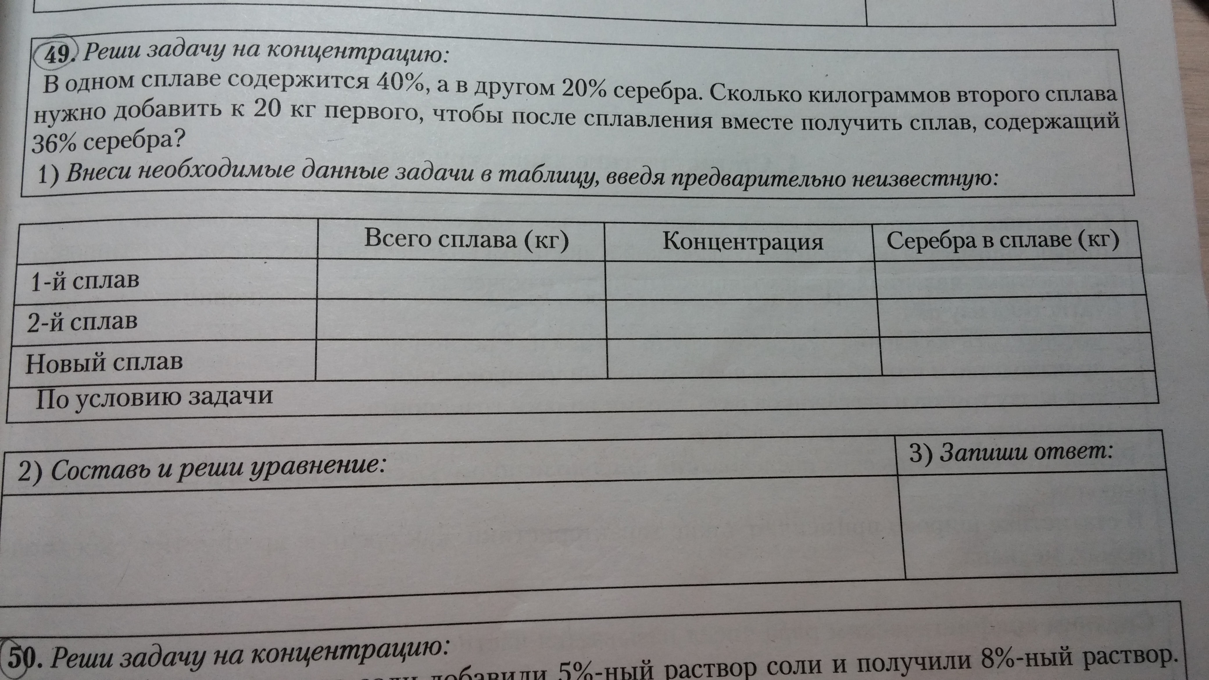 0,4*20 - кол-во серебра в первом сплаве0,2*х - кол-во серебра во втором сплаве.0,36*(20 + х) - кол-во серебра в итоговом сплавеТогда: 0,4*20 + 0,2х = 0,36*(20 + х) 8 + 0,2х = 7,2 + 0,36х 0,16х = 0,8 х = 5 (кг)