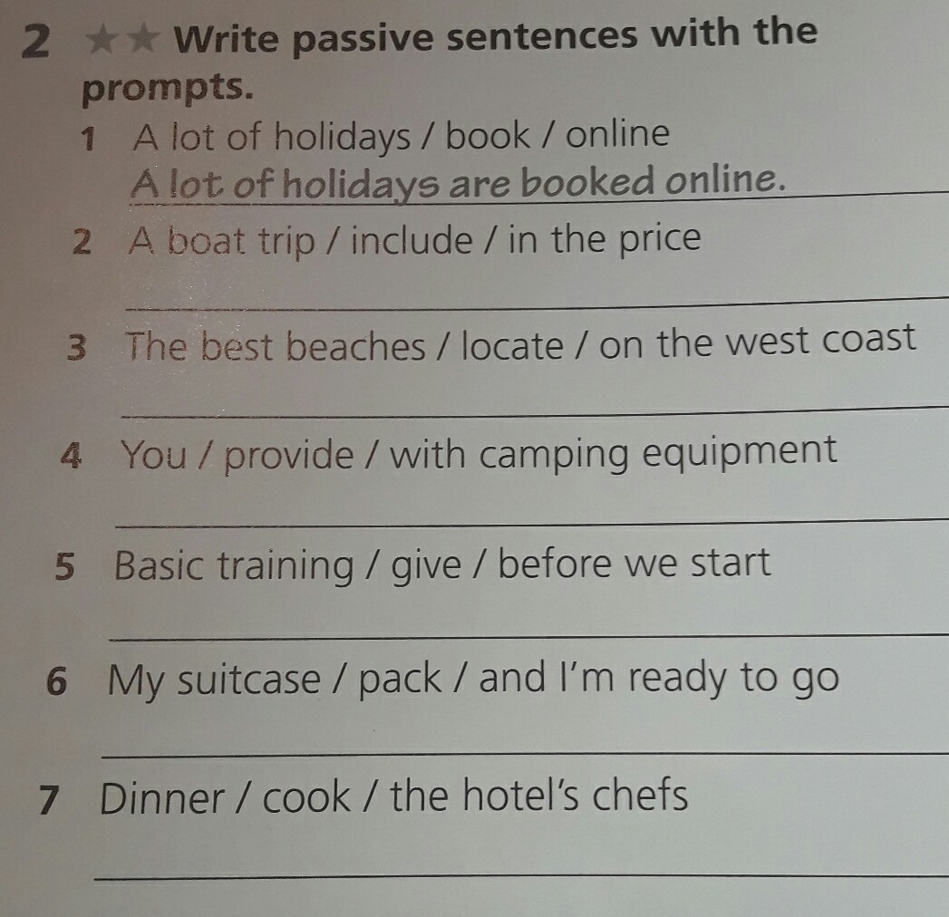 2)....are included.... 3)....are located... 4)....are provided... 5)...are given... 6) are packed.. 7)...are cooked...