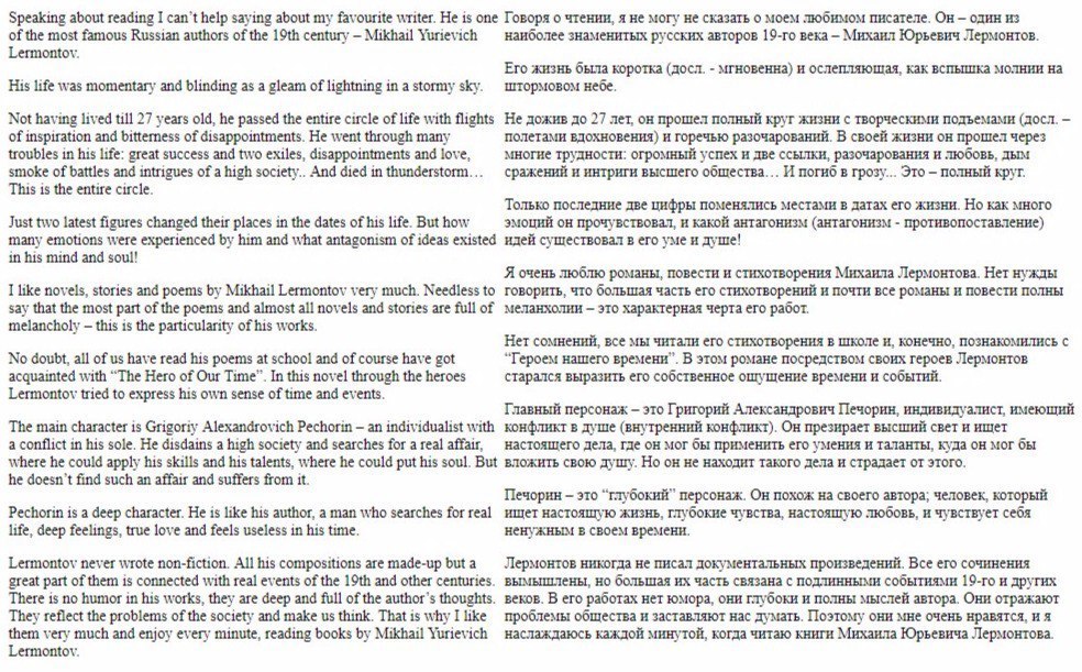 Я писал огромное сочинение. Оно полностью правильное (по грамматике), перевод прилагается. Выберешь то, что нужно