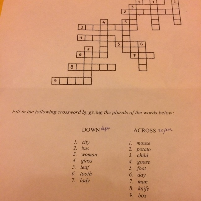 заполнить в последующий кроссворд, давая множественное число слова ниже