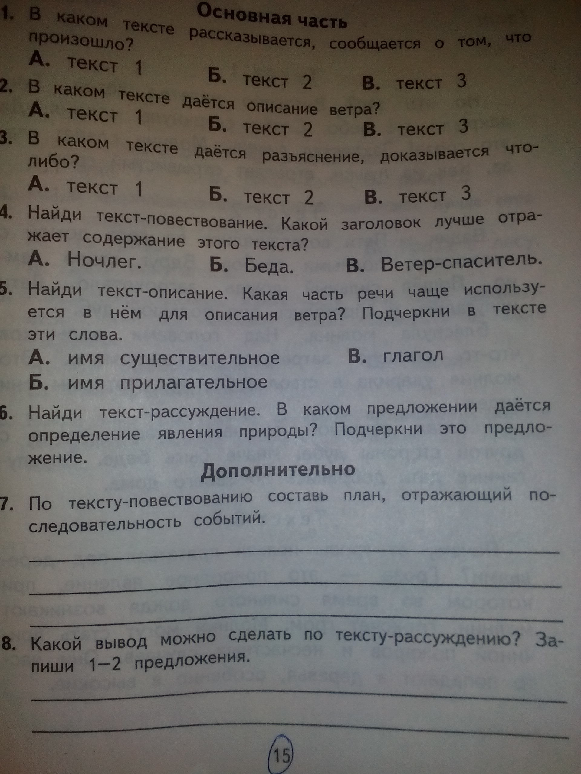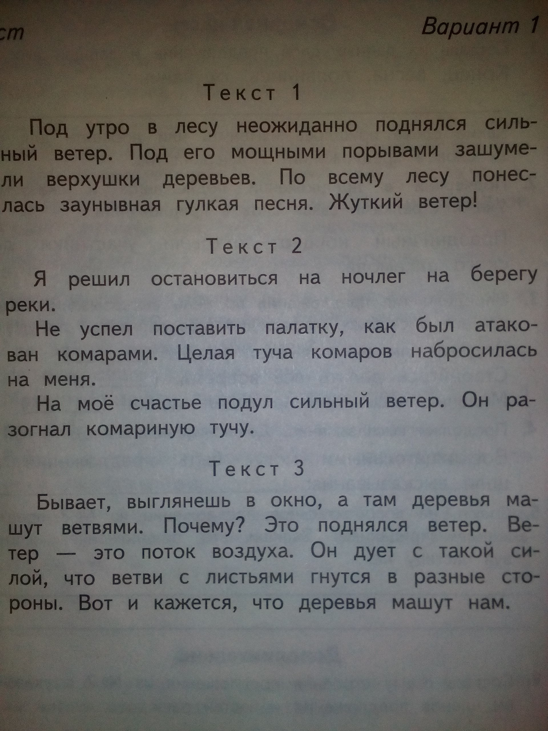 1. б) 2 текст 2. а) 1 текст 3. в) 3 текст 4. б) беда